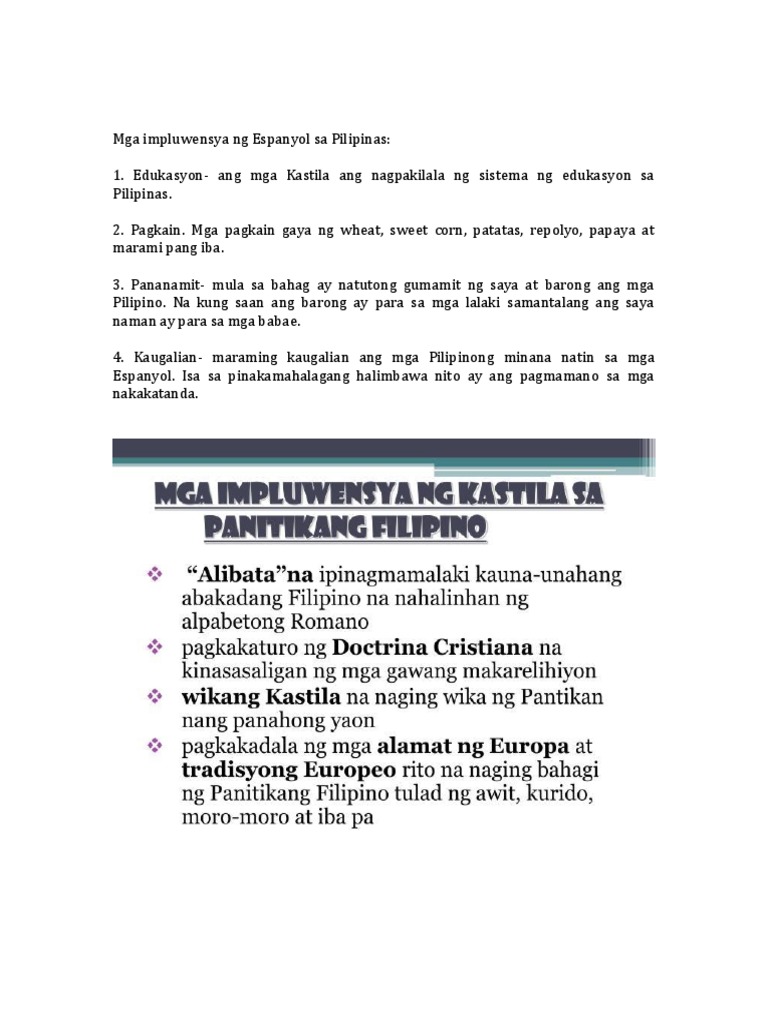 Ang pananakop ng mga Kastila sa Pilipinas sa pamamahala ng Espaa na tumagal ng mahigit 333 taon ay may malaking kontribusyon sa Kultura ng PilipinasAng Wikang Filipino na mas kadalasang kilala.